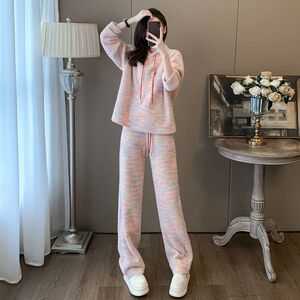 软糯慵懒风休闲运动套装女春秋宽松连帽卫衣高腰阔腿裤两件套女装