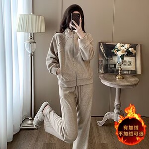 休闲运动套装女秋冬新款加绒加厚洋气显瘦减龄网红外套时尚两件套