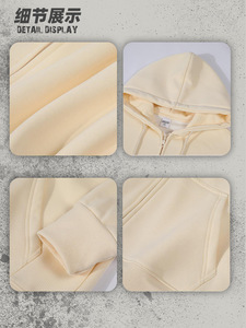 450g秋冬华棉拉链连帽卫衣纯色男宽松百搭连帽衫批发宽松外贸电商