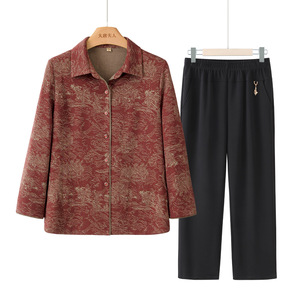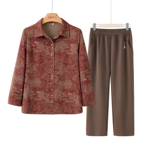 2025新款奶奶秋装衬衫中老年人女装老太太衣服中国风春秋妈妈套装