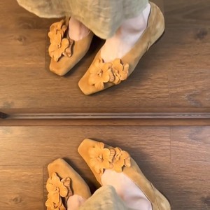 2025新款法式复古方头气质花朵浅口单鞋女新中式内增高平底豆豆鞋