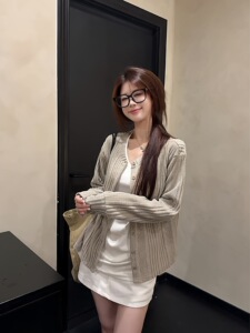 韩系长袖针织开衫2025秋季新款V领坑条气质外套上衣女潮其他常规