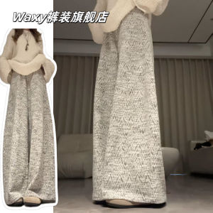 小香风简约阔腿裤女秋季2025新款小个子高腰休闲肌理感针织遛弯裤