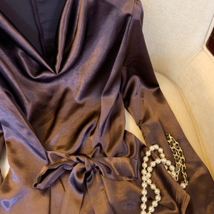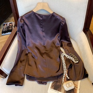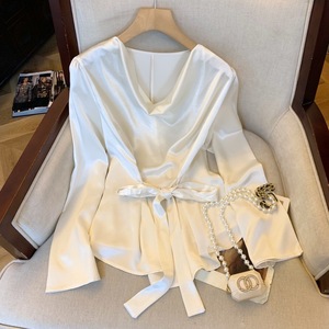 广州十三行高货爆款~老钱风荡领缎面衬衫女秋季法式设计绑带衬衣