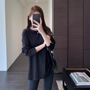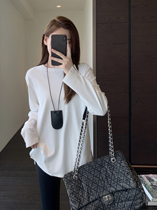 搭配神器~高品质慵懒时髦开叉打底衫长袖T恤女秋冬新款