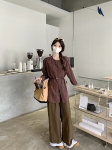 开春chic套装时尚职业穿搭长袖衬衫衬衣休闲阔腿裤子今年流行女装