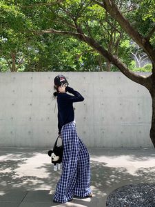 休闲套装带胸垫吊带背心女长袖防晒外套早秋格子阔腿长裤时尚套装