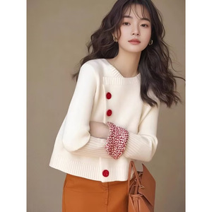 毛衣女款2025年新款入秋气质高级感韩系穿搭白色圆领针织开衫外套