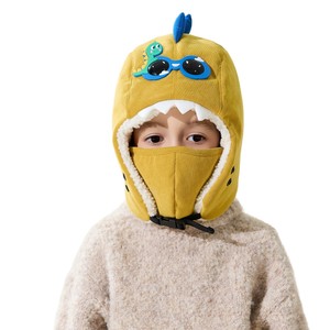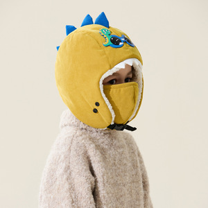 冬季儿童帽子男童雷锋帽女童护耳帽卡通恐龙加绒防寒防风保暖帽子