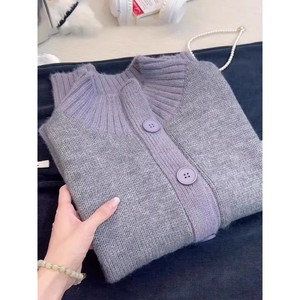 慵懒高级感软糯毛茸茸灰紫色针织衫2025年春装圆领单排扣显瘦上衣