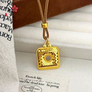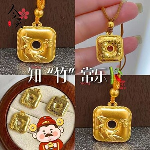 【知竹常乐】金店款古法金双面四方福字竹节平安扣鱼鳞吊坠项链女