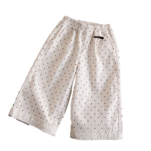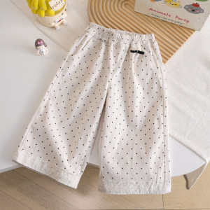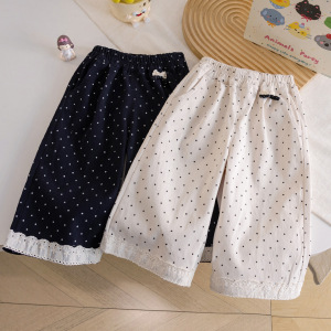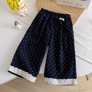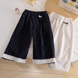 女童秋季装洋气波点裤2025新款儿童甜美可爱宽松蕾丝花边阔腿长裤