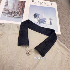 撞色拼接翻领长袖夹克衫 2025秋季新款宽松大码开衫外套女