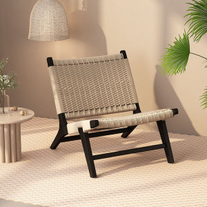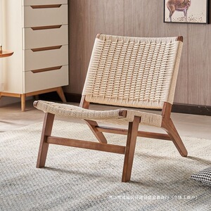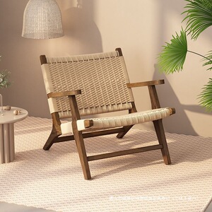 绳编实木单人沙发椅北欧阳台休闲椅子日式侘寂风小户型靠背懒人椅