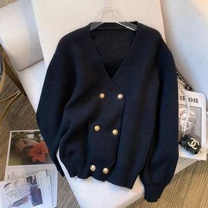 春秋季新款针织开衫女法式小香风V领双排扣别致毛衣外套上衣2025