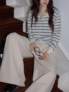 高级感POLO领条纹针织衫女2025秋韩系气质休闲宽松长袖上衣