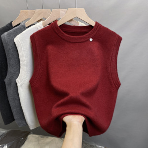 叠穿针织马甲女2025秋季新款百搭圆领套头背心坎肩外搭无袖毛衣