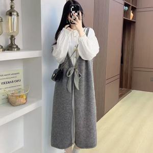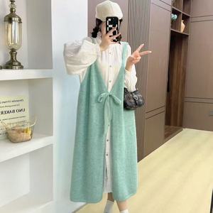 大码胖mm时尚软糯过膝马夹裙新款针织衫背心马甲女叠穿可爱吊带裙