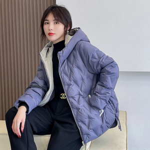 跨境秋冬新款羽绒服女短款保暖白鸭绒菱格时尚连帽韩版休闲外套潮