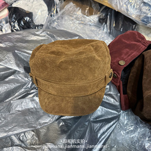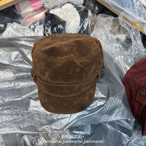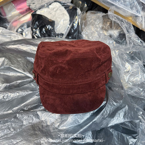 日系复古纽扣平顶贝雷帽女文艺小众大头围显脸小麂皮绒贝雷帽子潮