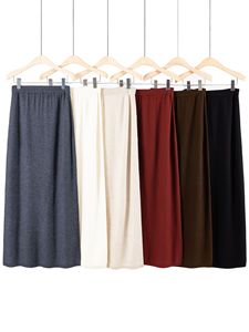 中长款针织半身裙女2025秋冬新款直筒包臀高腰不开叉修身加厚裙子