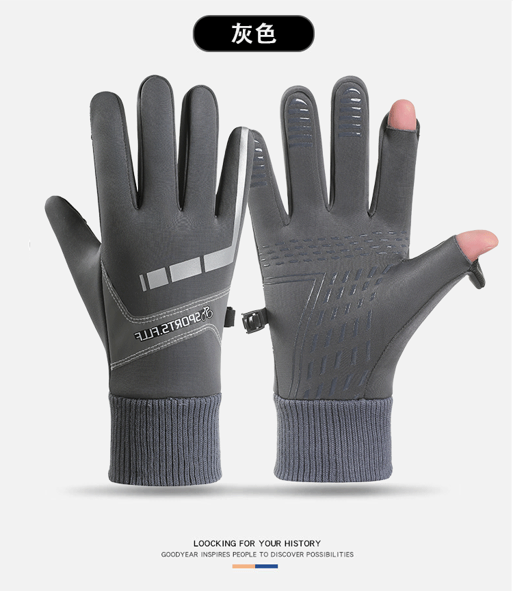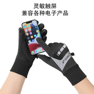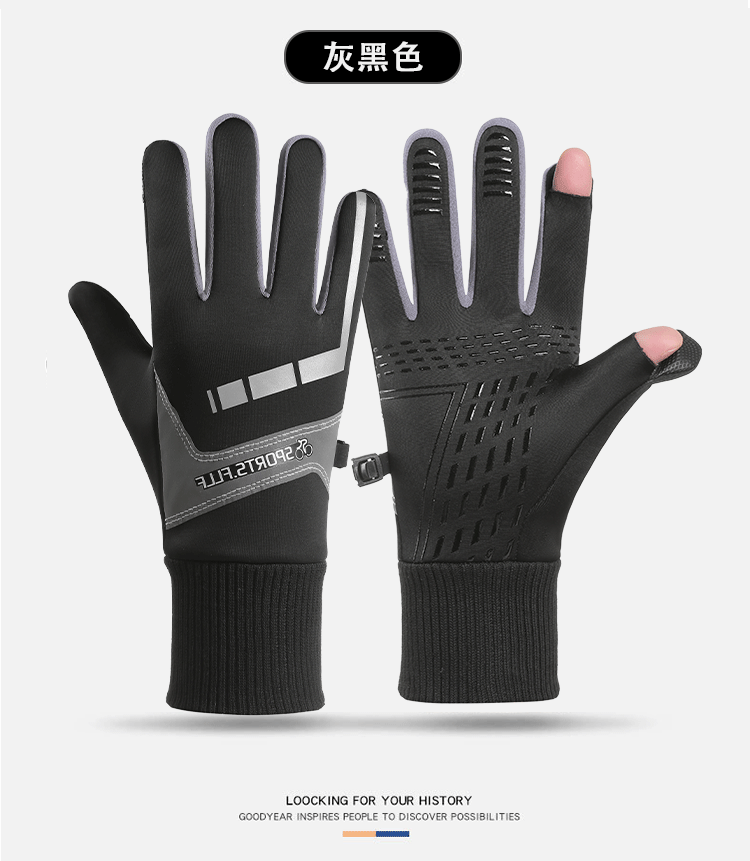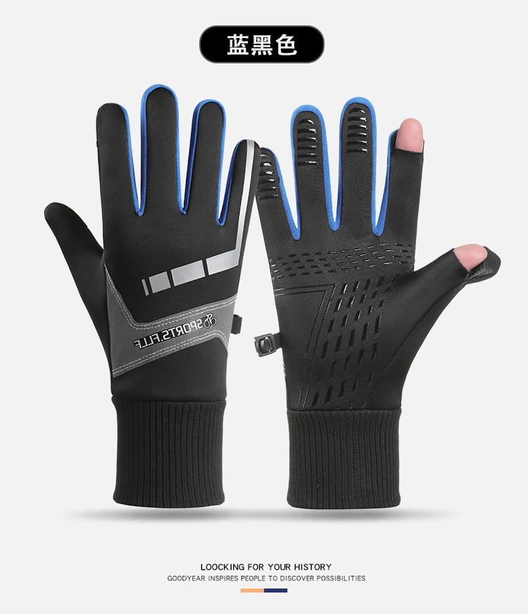 冬季骑行手套男士户外骑车反光露指触屏防滑防风加绒保暖骑行手套