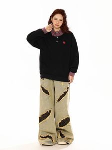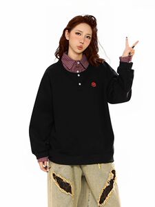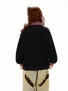 潮牌格纹拼衬衫领卫衣男女假两件潮流原宿风宽松上衣外套潮