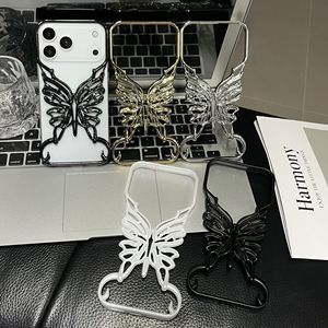 无边框镂空蝴蝶适用苹果17PROMAX手机壳iPhone16电镀PC保护套磨砂