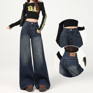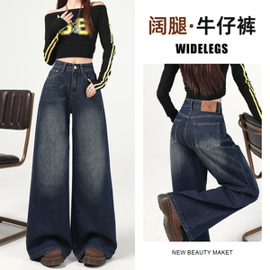 阔腿牛仔裤女2025秋季新款高腰显瘦宽松高街不贴腿垂感直筒拖地裤