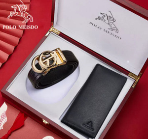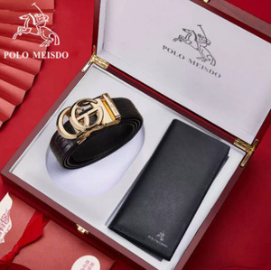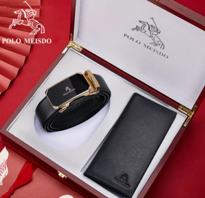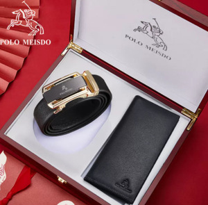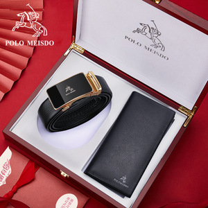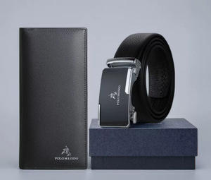 正品保罗正品男士高档真皮皮带钱包礼盒头层牛皮套装奢侈品牌批发