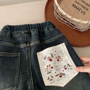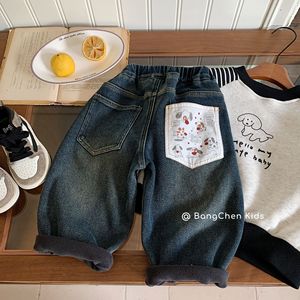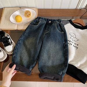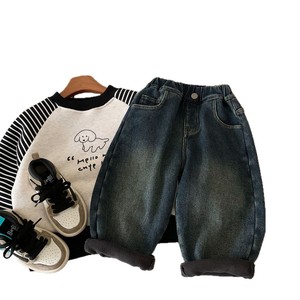 邦诚儿童裤子2025冬季新款韩版男女童宽松加绒牛仔裤中小童休闲裤