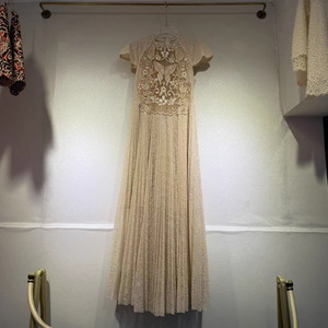 实拍现货优雅高级感蕾丝刺绣连衣裙女新款法式气质优雅百褶中长裙