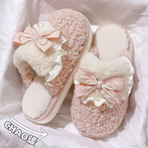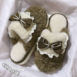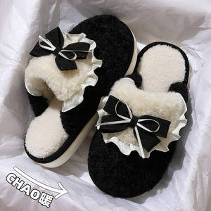蝴蝶结棉拖鞋女款秋冬季2025新款室内家居厚底保暖毛毛月子棉拖男