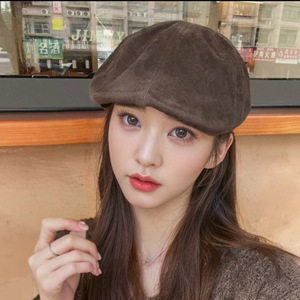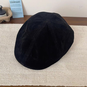 2025新款麂皮绒前进帽女秋冬百搭大头围贝雷帽显脸小反戴画家帽子