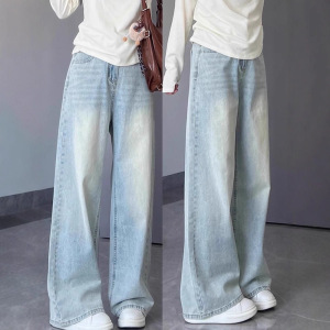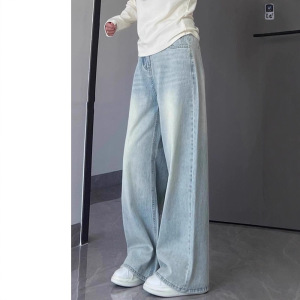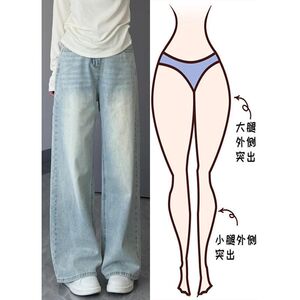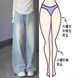 浅色高腰阔腿牛仔裤女2025新款梨型身材大码胖显瘦宽松直筒裤子