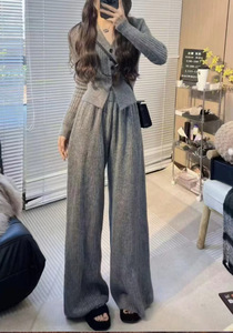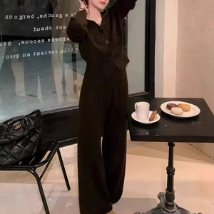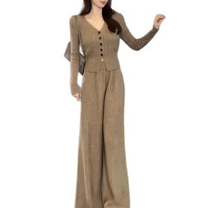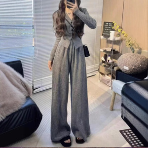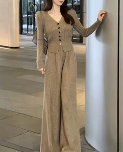 PH50831大爱美依缘2025秋季新款小个子时尚V领上衣阔腿裤两件套女