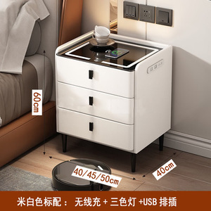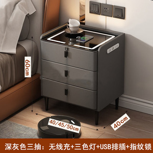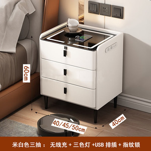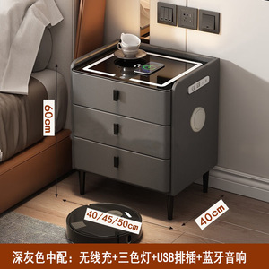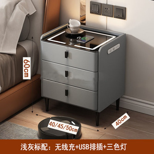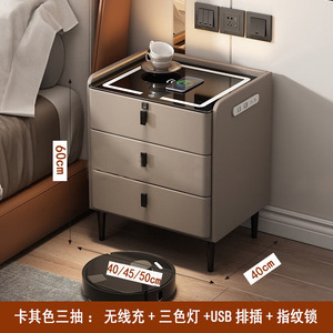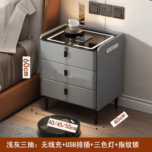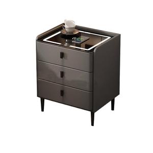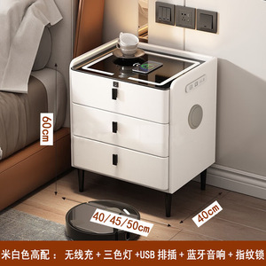 智能床头柜多功能实木无线充电音响指纹锁现代卧室床边收纳储物柜