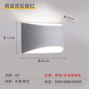 明装石膏壁灯简约北欧氛围灯客厅书房石膏灯楼梯间卧室床头灯室内