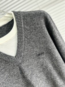 M字母提花羊毛羊绒假两件长袖针织深圳南油高货 明星同款毛衣女秋