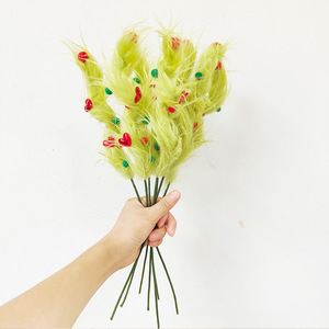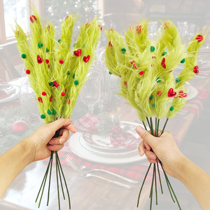圣诞毛绒插枝格林奇圣诞节插枝粘绒球和爱心的插枝节日装饰品