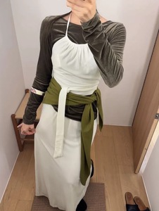 现货 2025秋季新款韩国东大门mo*oha复古丝绒半身裙/纯色圆领上衣