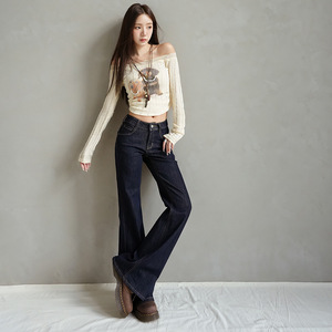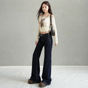 深蓝不褪色低腰微喇叭牛仔裤女2025秋冬季新款裤子黑牛同款喇叭裤