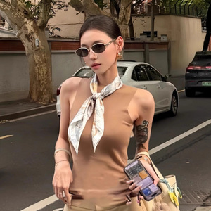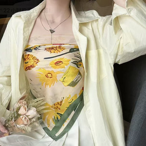 老钱风优雅搭配领巾小方巾70cm韩系新款丝巾女高级感复古百搭印花