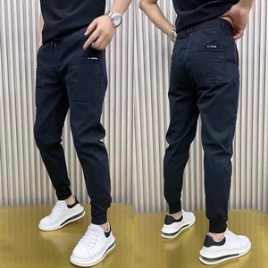 秋季新款小脚休闲裤子男网红痞帅六兜修身纯色弹力束脚哈伦工装裤