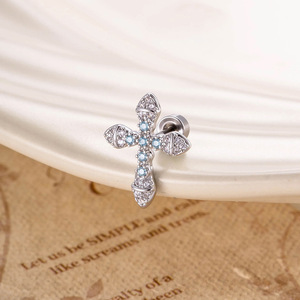 亨森新款甜美微镶锆石十字架甜酷风格情侣款软骨穿刺耳骨钉