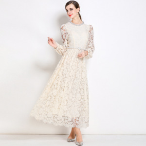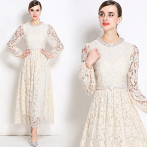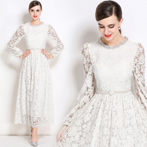 赫小本法式轻奢名媛气质减龄刺绣钉珠蕾丝连衣裙高级洋气晚礼服女