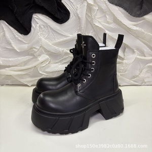 牛皮版~十字花复古擦色英伦风马丁靴女幻影德比鞋厚底增高短靴子