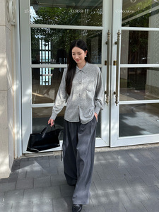 ELSISSI百搭Polo领上衣薄款2025秋装十三行高级感宽松针织开衫女