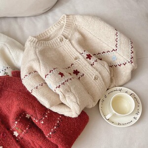 2025新款跨境文艺风刺绣圆领毛衣外套女宽松百搭秋冬针织开衫上衣