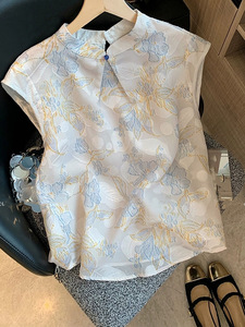 新中式国风衬衫女2025夏季新款设计感复古圆领盘扣飞飞袖上衣修身